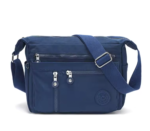 Large spacious crossbody bag. Several compartments including side pockets and a key holder.Waterproof , Feather weight, durable and washable. Measures L27.5 by W12.5 by H21.5 CM.