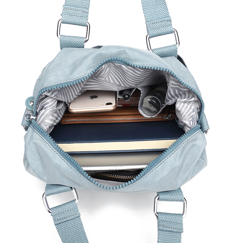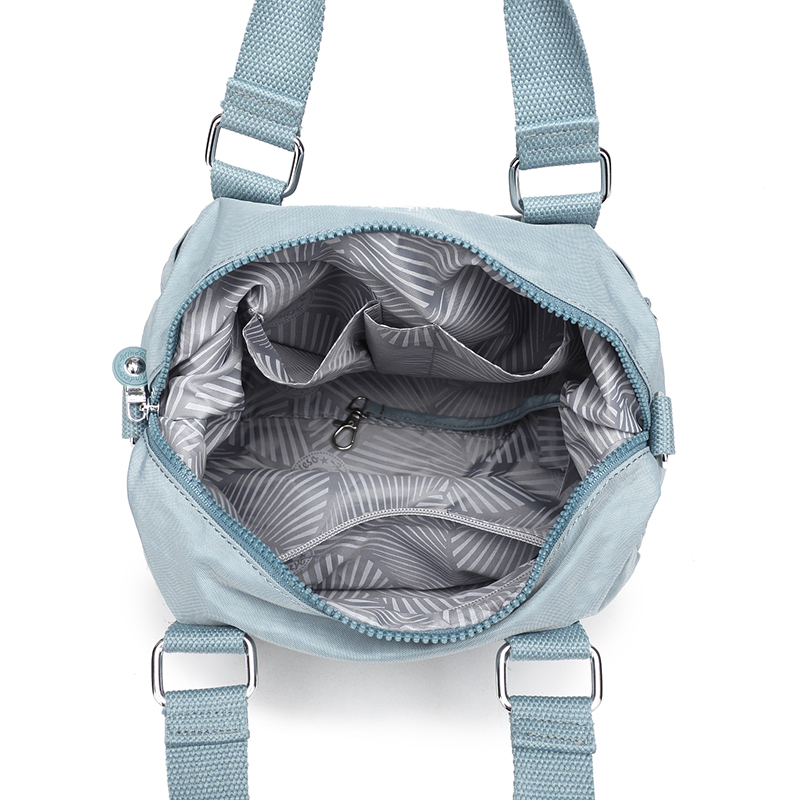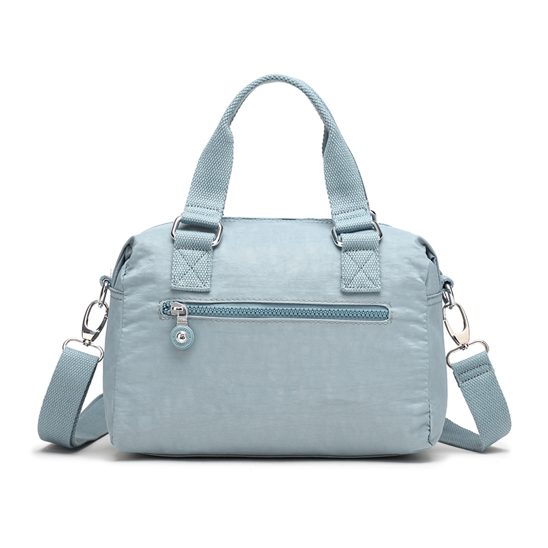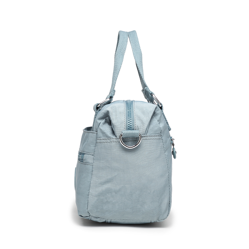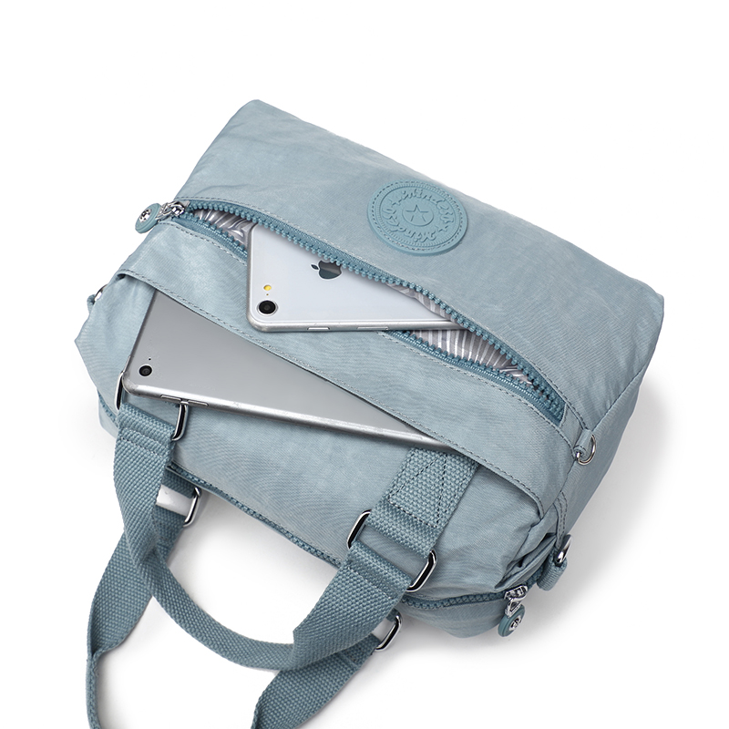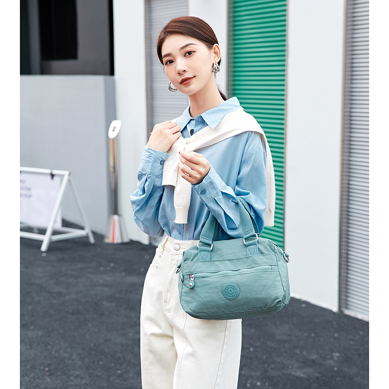 spacious Everyday Crossbody bag with multiple compartments, 2 way carry option- an adjustable shoulder belt and short handles. . Elegant finish.Waterproof, feather weight, durable and washable. Measures L28 by W14 by H17 CM.