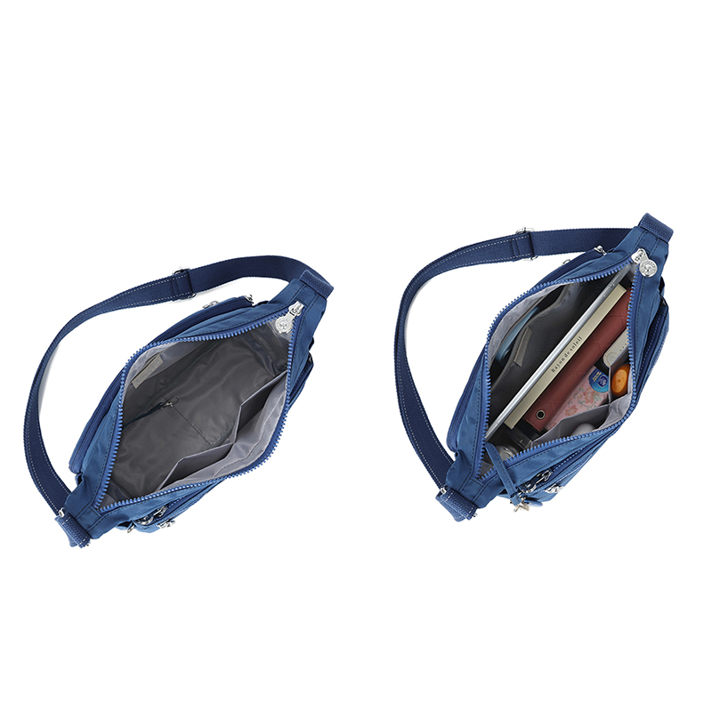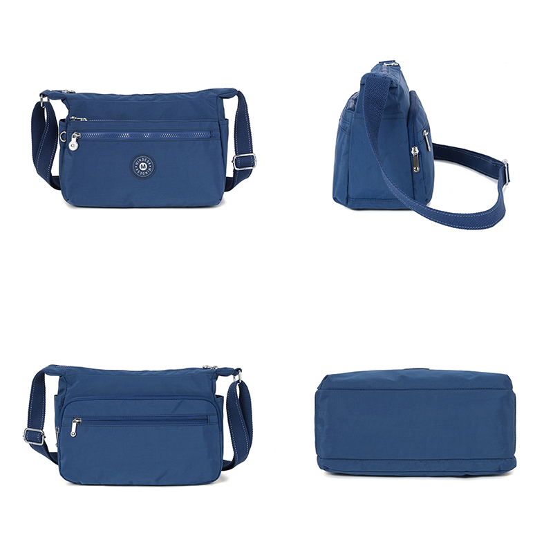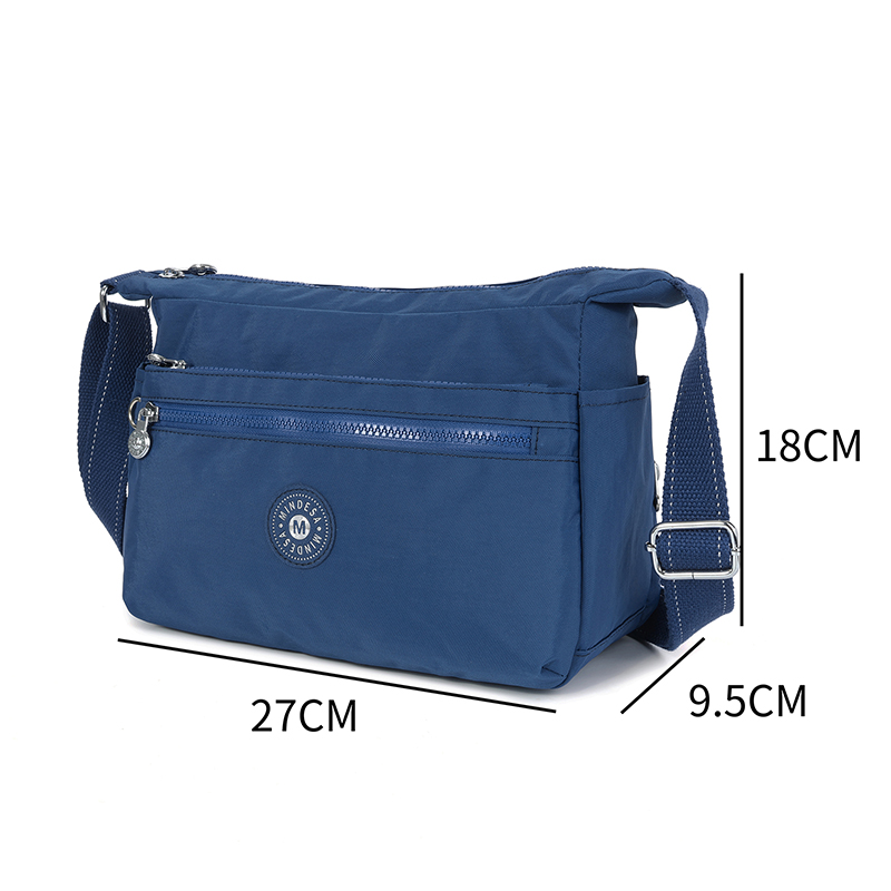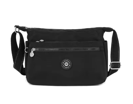 Classic everyday crossbody bag. Several compartments including side pockets and a key holder. Elegant silver hardware detailing. Waterproof , Feather weight, durable and washable. Measures L27 by W9.5 by H18 CM.