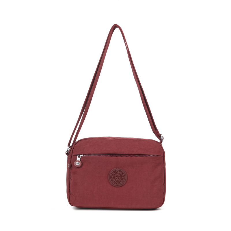 Elegant daily use crossbody bag, perfect for running errands and travelling. 4 full length zip compartments with an adjustable shoulder strap. Clean finish. Waterproof, feather weight, durable and washable. Measures L26 by W11 by H19 CM.