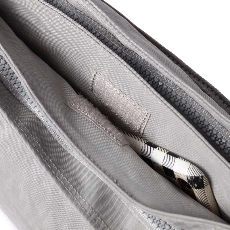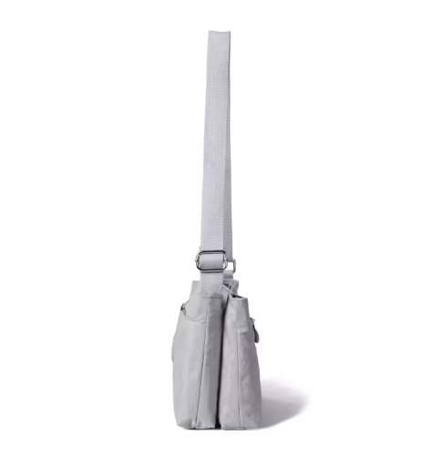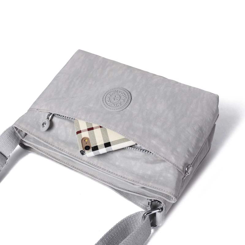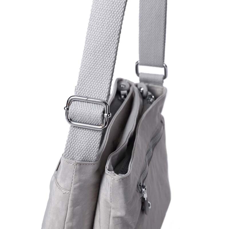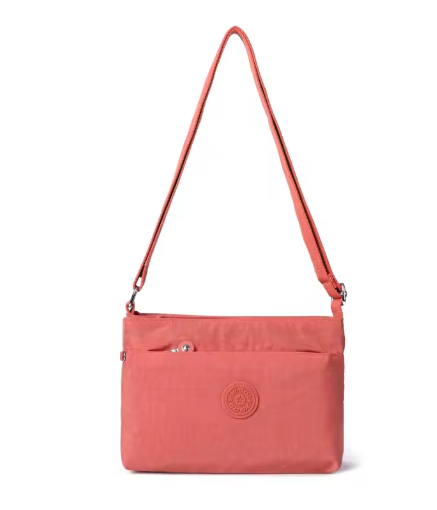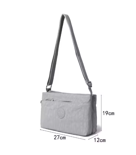 Double sided crossbody bag with multiple compartments, an adjustable shoulder belt , suits all occasions. Elegant finish.Waterproof, feather weight, durable and washable. Measures L27 by W12 by H19 CM.