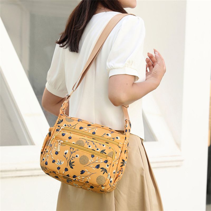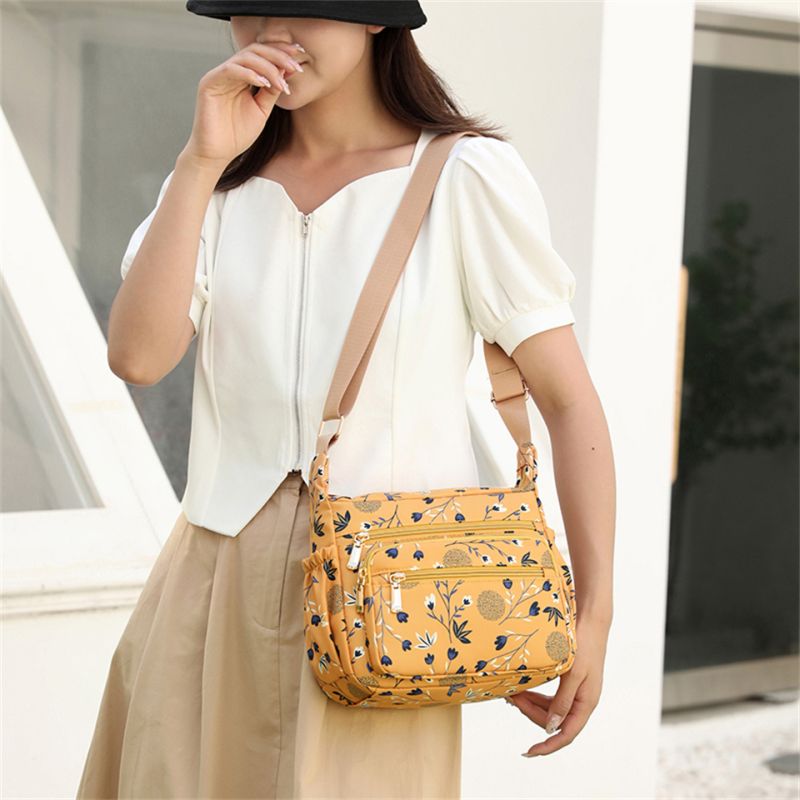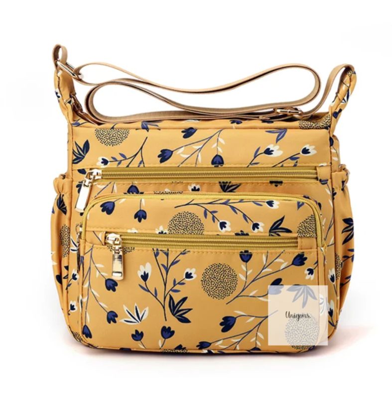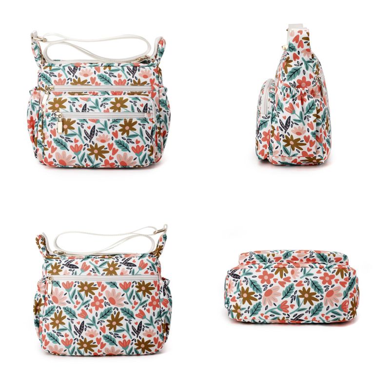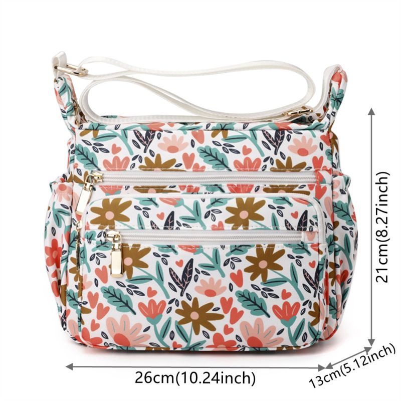 Pretty floral print crossbody bag with multiple compartments. Spacious main cavity. Waterproof , Durable , washable and versatile.