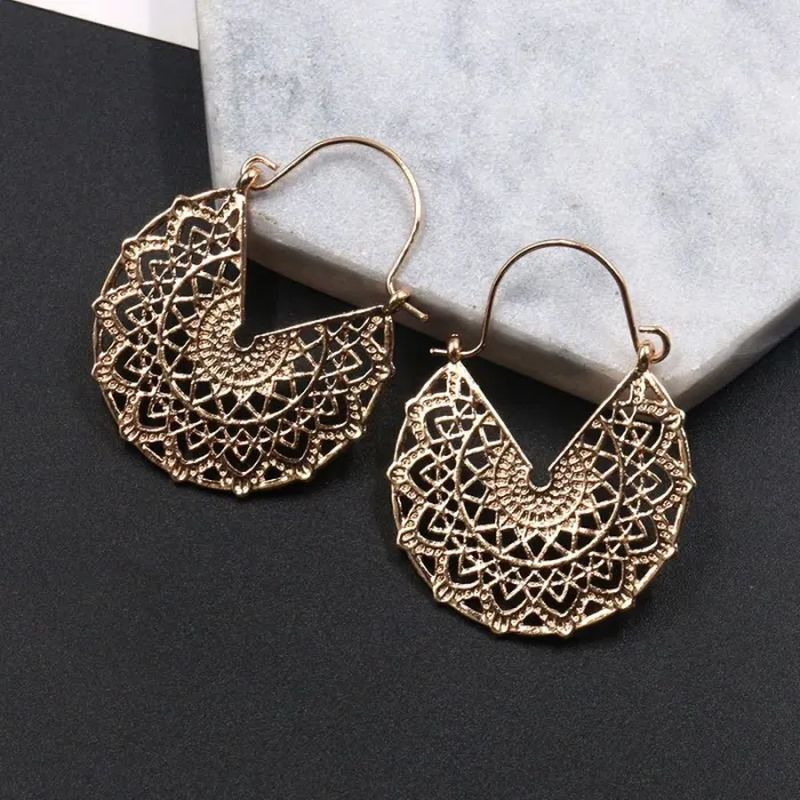 Gold hollow out drop earrings