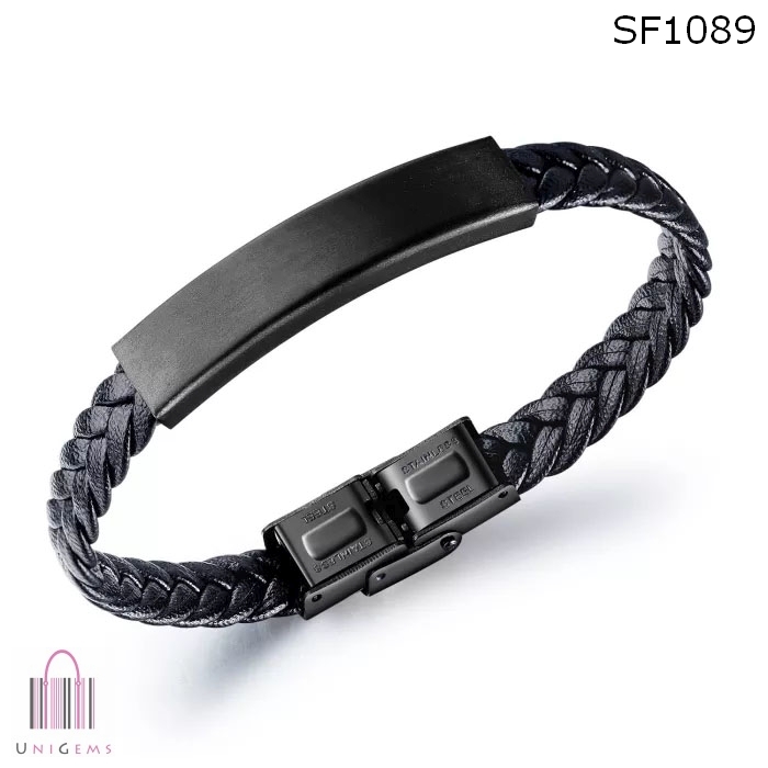 Leather and Stainless steel. Hypoallergenic. Anti Fade. Long Lasting.