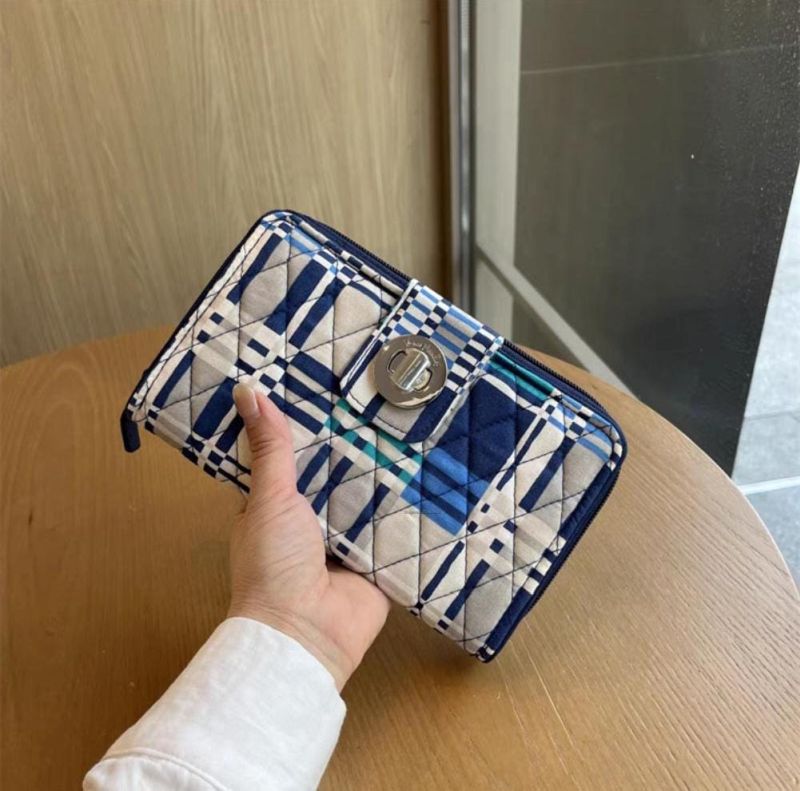 Double sided large wallet. One side has a turn lock and holds upto 12 cards and a bill compartment. The other compartment is zipped all round and opens up into a wallet with card slots and note compartments. Also has an outer zip pocket for coins.