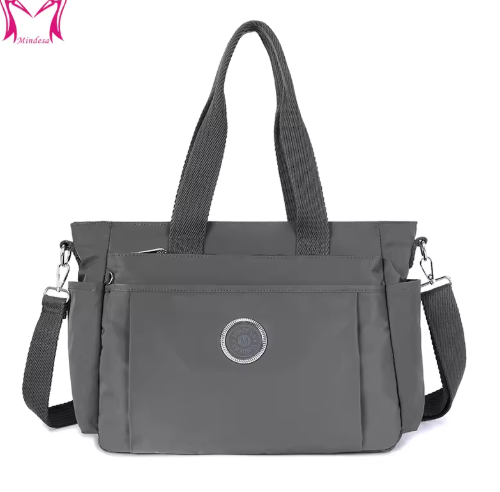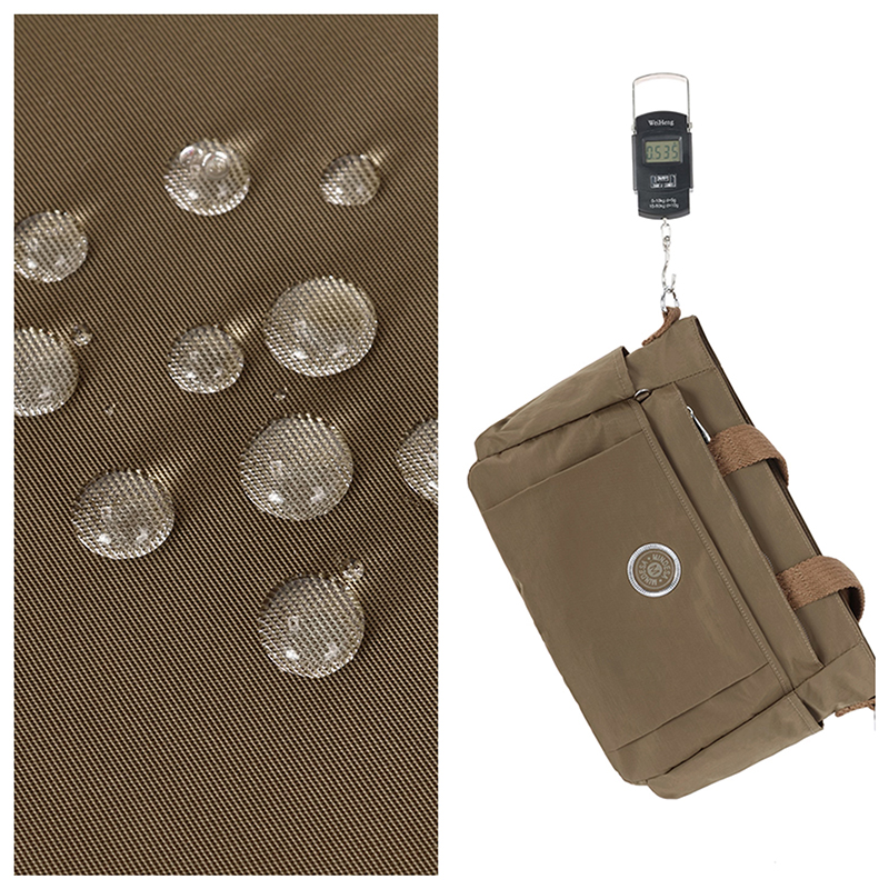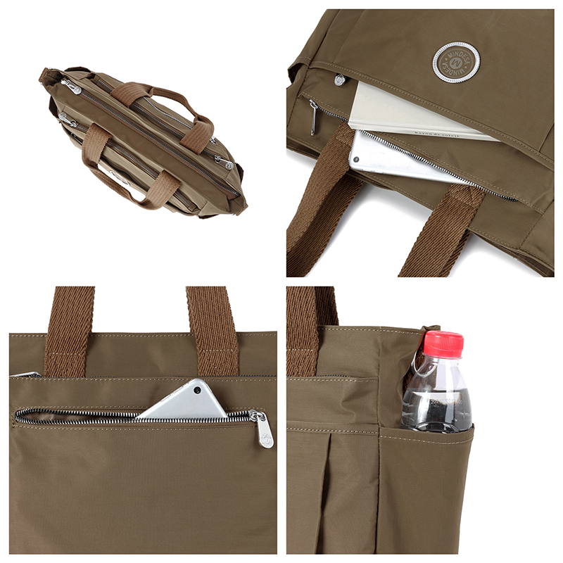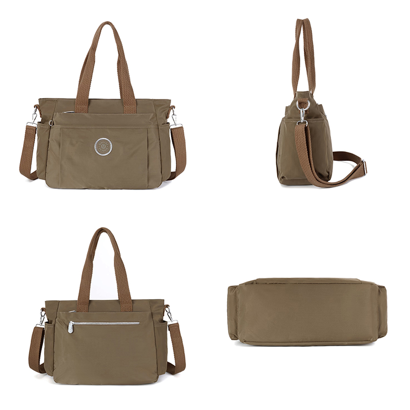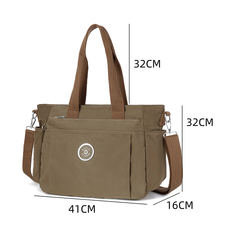 Large spacious tote bag , divided in 3 full size sections, can accommodate a laptop and lots more. Several utility compartments . Two way carry option as a tote or a crossbody handbag. waterproof, Feather weight, Durable and Washable. Measures L41 by W16 by H32 CM.