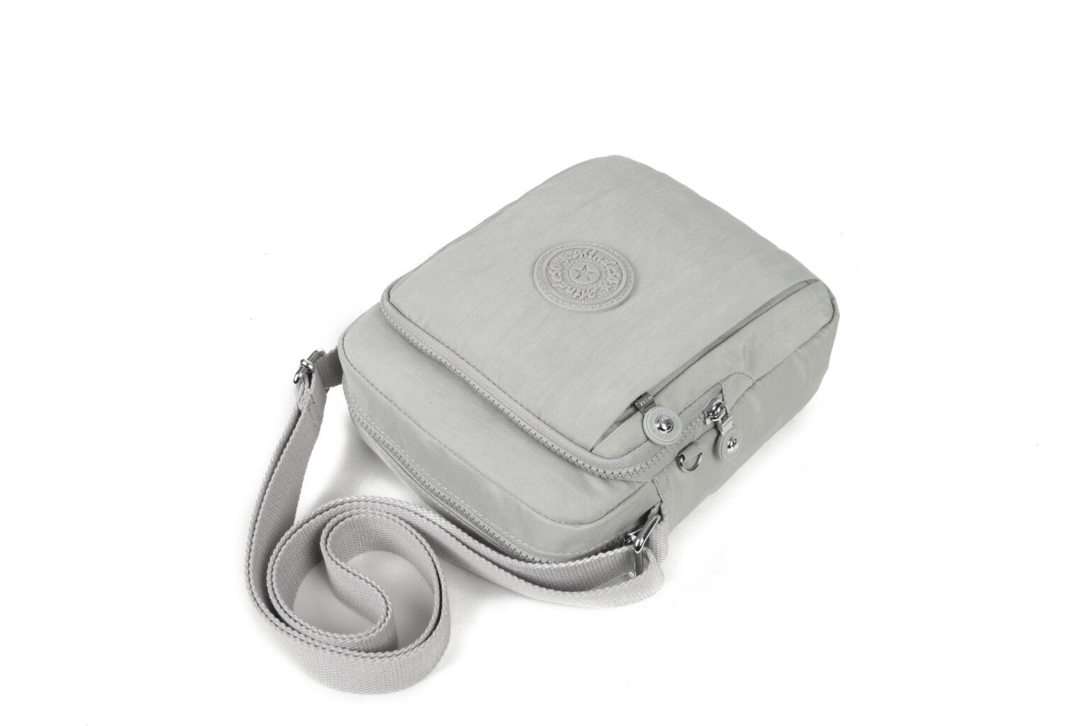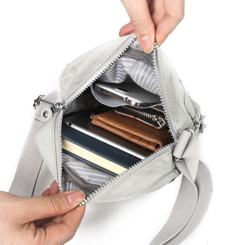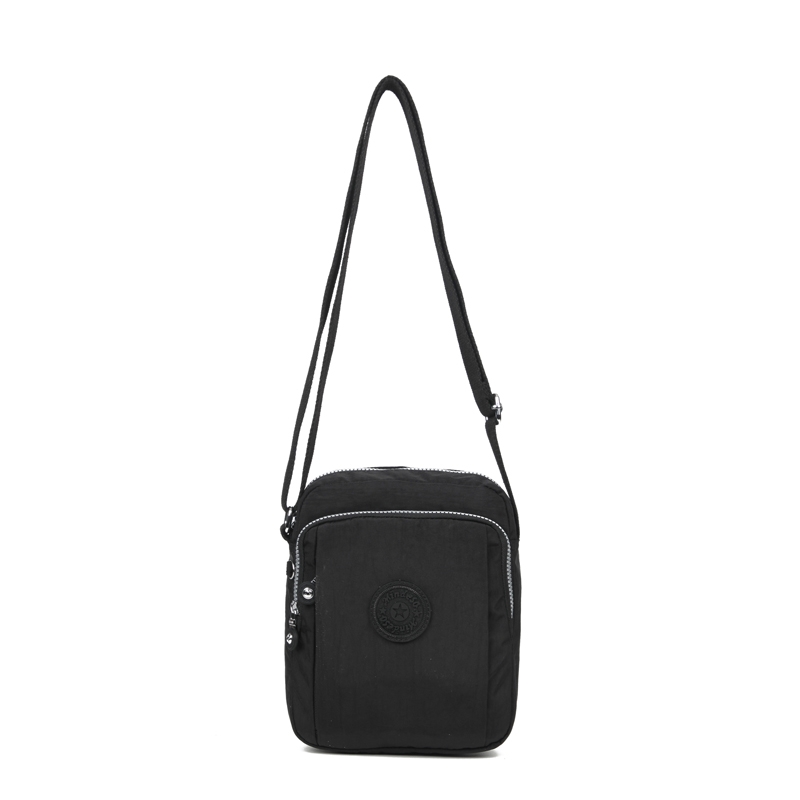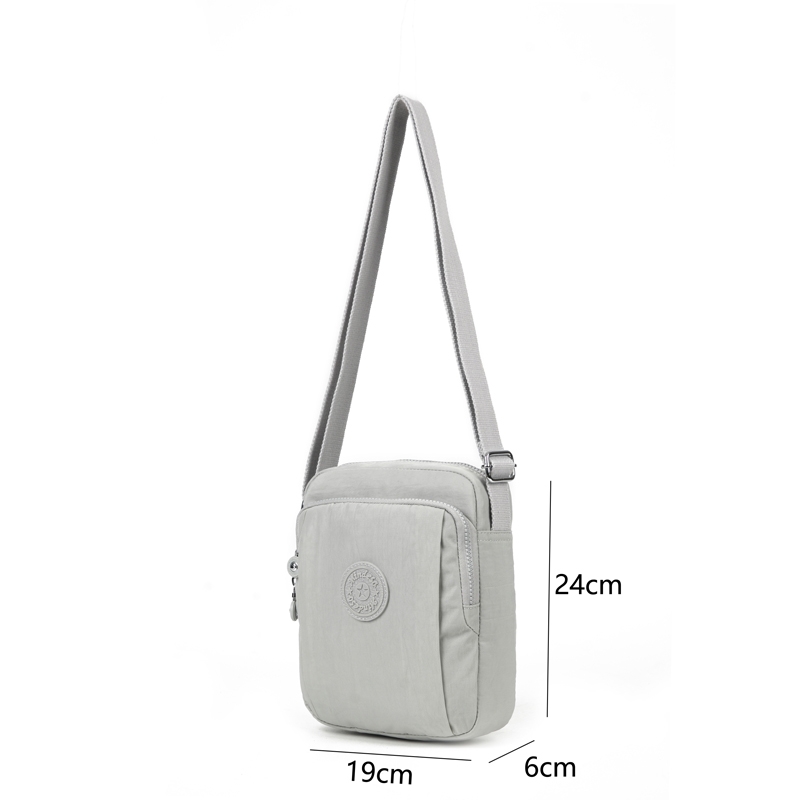Multi compartment unisex crossbody bag, ideal for travelling and daily use. Has an adjustable shoulder strap. Clean finish. Waterproof, feather weight, durable and washable. Measures L19 by W6 by H24 CM.